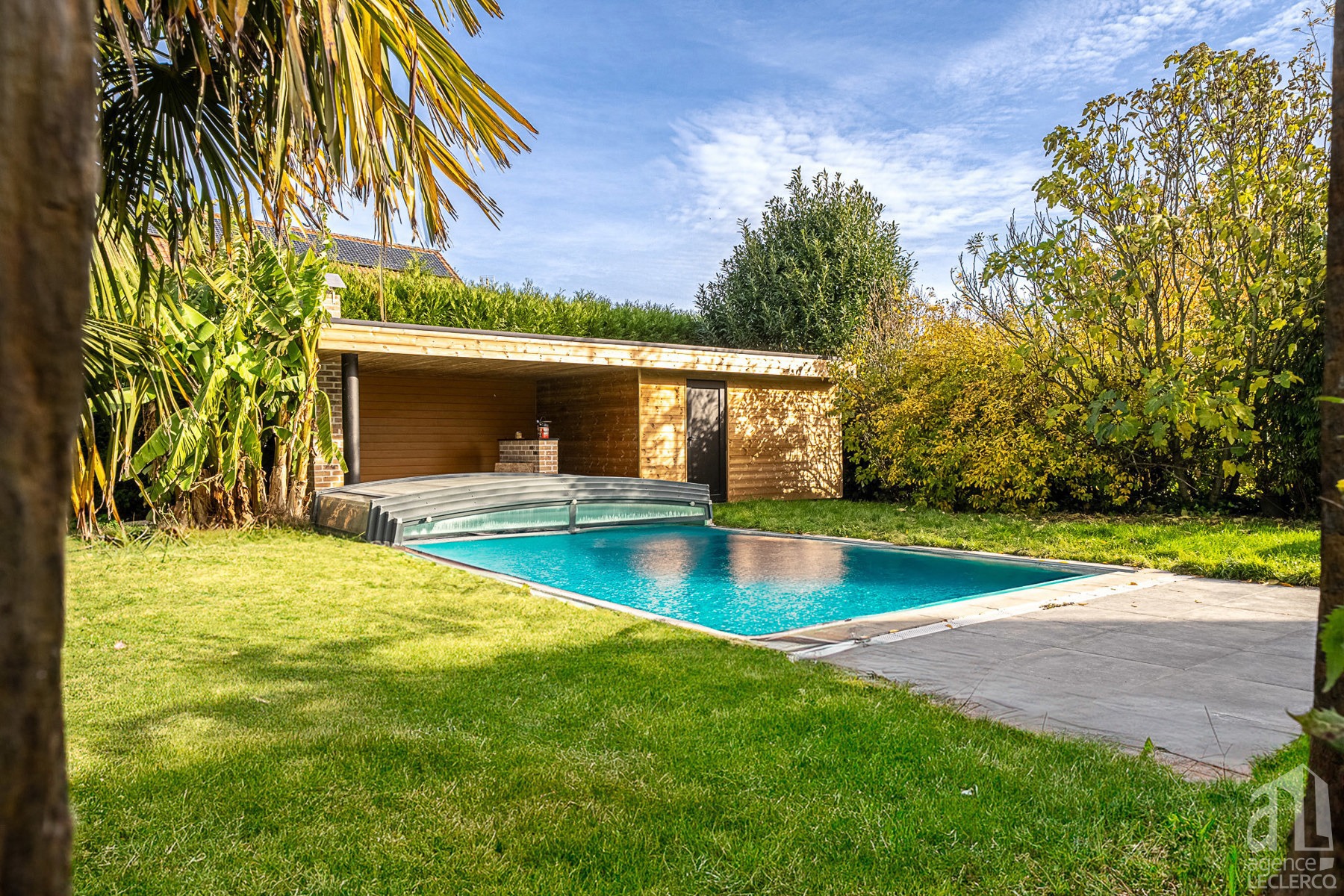 L’extérieur vous séduira par son spa, ses belles terrasses, sa piscine équipée d’une couverture rétractable ainsi que son pool house accompagné d’un spacieux abri de jardin.