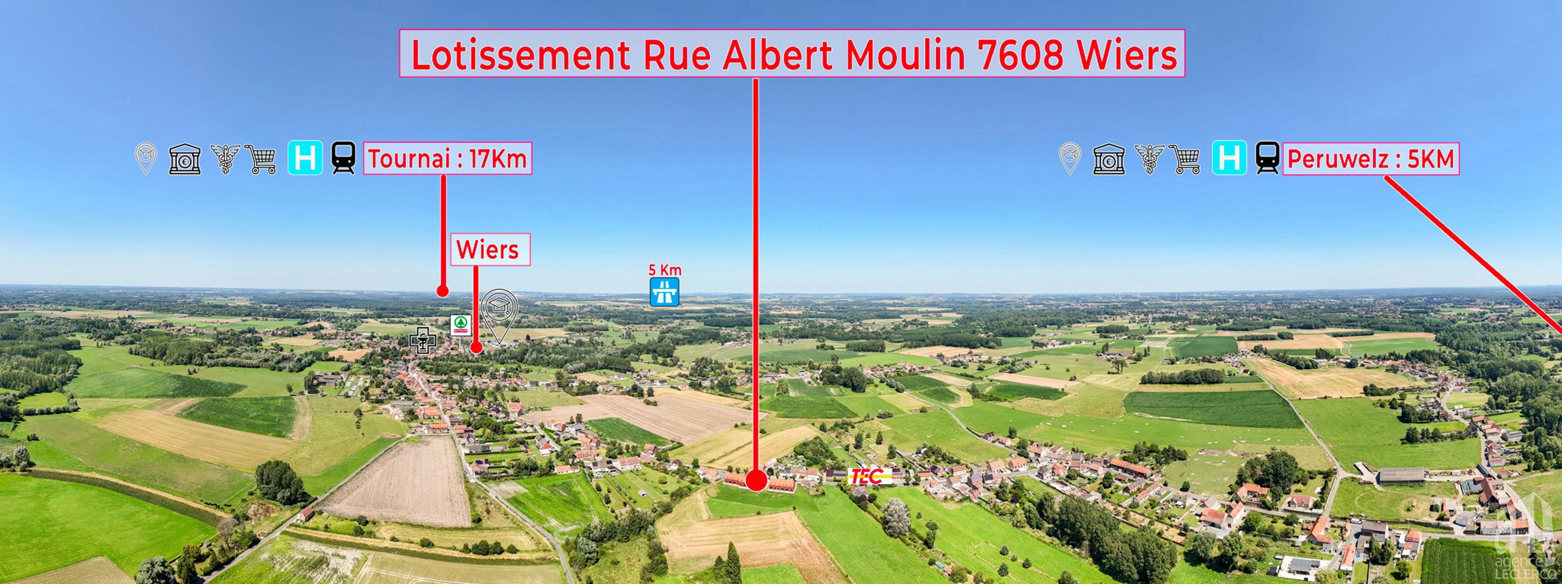 Idéalement située au cœur du village de Wiers entre Tournai et Péruwelz, l'agence Leclercq vous propose une maison neuve tout confort, comprenant au rez-de-chaussée : hall avec WC suspendu et lave-mains, grand séjour en L traversant, cuisine super équipée, cellier, terrasse, jardin clôturé et aménagé (pelouse semée). Écran séparatif entre les maisons.